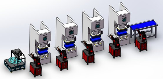 在制造业中,冲床设备的应用较多,冲床的上下料工艺以前主要由人工完成。随着自动化技术的不断提高与普及,实现冲床的自动上下料的设备也逐年完善。比较成熟的冲床上下料有多种方式,比如通过焊接机器人实现自动上下料、通过摆臂机械手实现冲床的自动上下料和通过连杆模组实现冲床的自动上下料。每种方式均有自己的特点,用户可根据自己实际的生产需要进行选择。